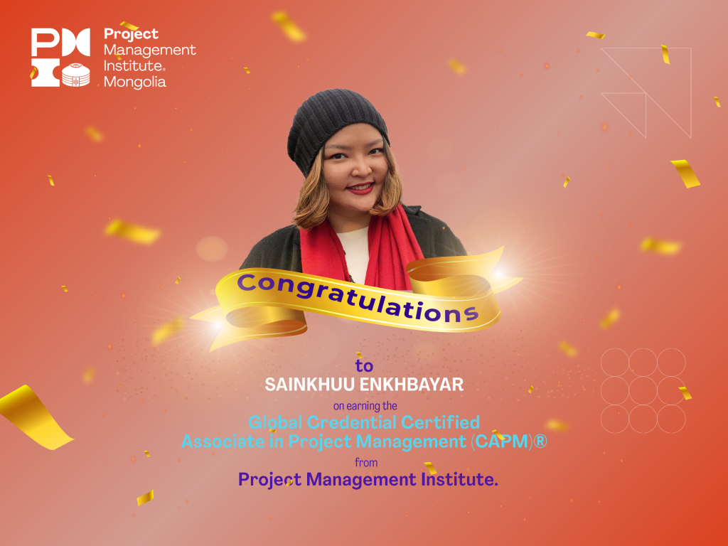 Congratulations to PMI Mongolia Chapter member Sainkhuu Enkhbayar, who has achieved a major milestone in her career and her professional certification journey by earning the Certified Associate in Project Management (CAPM)® certification from the Project Management Institute.