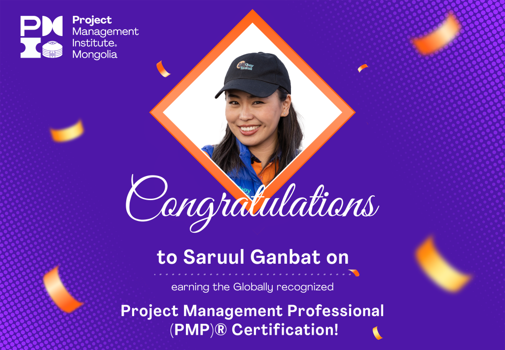 PMI Mongolia®Chapter congratulates Ms. Saruul Ganbat and extends the warmest wishes for her continued success, good health, and happiness in all her future endeavors!