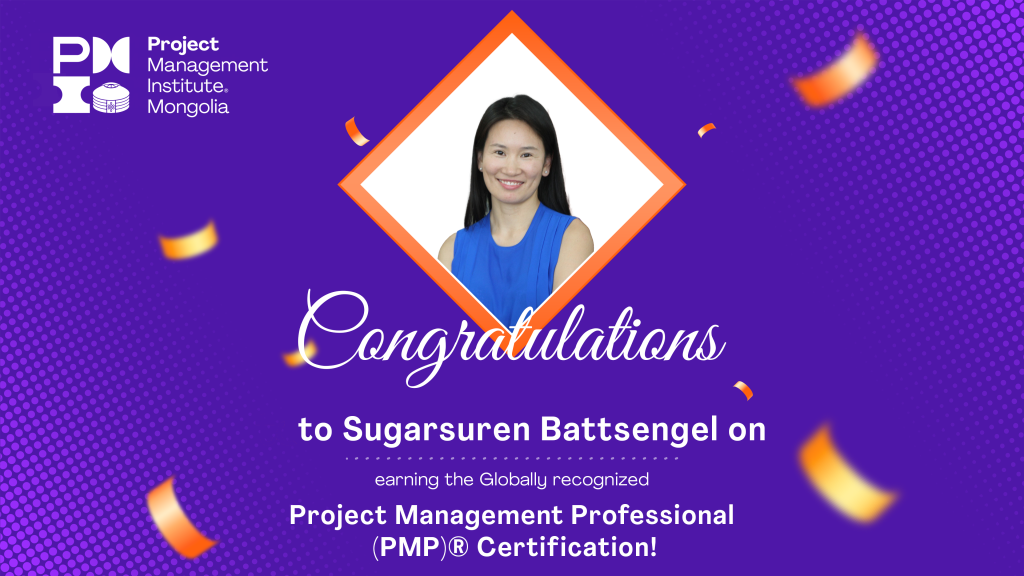 Congratulations to PMI Mongolia Chapter’s member Ms.Sugarsuren Battsengel on earning the globally recognized (Project Management Professional) (PMP) ® Certification issued by the Project Management Institute.