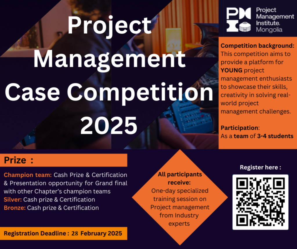 The competition, spearheaded by the Project Management Institute Mongolia Chapter (PMI®MC) (https://www.pmimongolia.mn/), aims to cultivate and empower young project managers while fostering awareness of industry best practices in project management among students and the wider community.