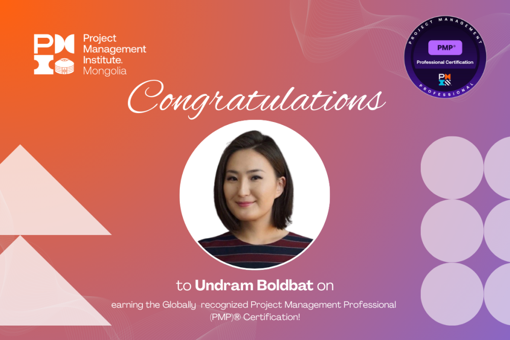We are proud to announce that our esteemed member, Undram Boldbat, has successfully earned the globally recognized Project Management Professional (PMP®) Certification, issued by the Project Management Institute (PMI®).