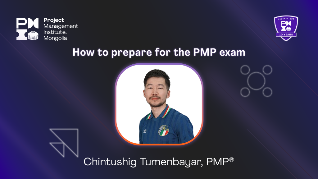PMI Mongolia Chapter-аас хэрэгжүүлж буй гишүүддээ зориулсан 3 дахь удаагийн PMP exam prep buddy program-д хамрагдсан манай гишүүн Т. Чинтүшиг (PMP) өөрийн PMP зэргийн шалгалтанд хэрхэн бэлдсэн талаарх туршлагаасаа бидэнтэй хуваалцсаныг та бүхэнд толилуулж байна.
