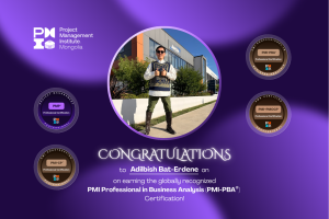 Олон улсын төслийн удирдлагын институт (PMI®)-ээс PMI® Professional in Business Analysis (PMI-PBA®)- Бизнесийн шинжилгээний мэргэшсэн мэргэжилтэн зэргийн сертификатаа гардан авсан